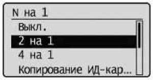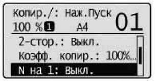 При выборе параметра <2 на 1> или <4 на 1> коэффициент масштабирования при копировании автоматически устанавливается для копирования нескольких документов на одной странице. Чтобы настроить коэффициент масштабирования при копировании вручную, выберите <2 на 1> или <4 на 1>, затем выберите <Коэфф. копированиям