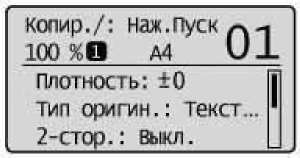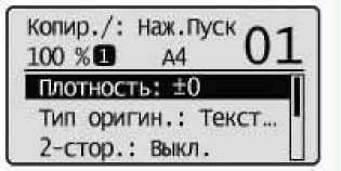 Можно выполнить точную настройку плотности документов, заданную в настройке "Настройка плотности" Укажите эту настройку, чтобы сделать <Плотность> темнее или светлее после ее настройки. Нажмите кнопку (Меню).