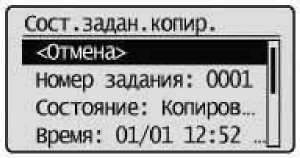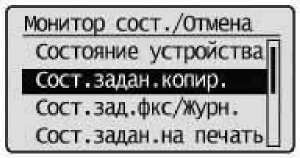 С помощью клавиш выберите пункт <Сост.заданий копирования:», затем нажмите [ОК].