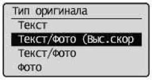С помощью клавиш выберите пункт <Тип оригинала>, затем нажмите [ОК].