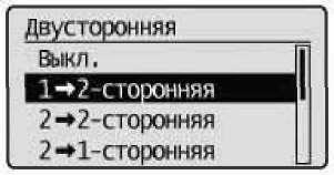 С помощью клавиш выберите пункт <1->2-стор.>, затем нажмите [ОК].