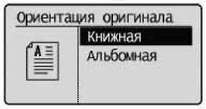 (3) С помощью клавиш выберите ориентацию оригинального документа, затем нажмите [ОК].