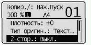 (2) С помощью клавиш выберите пункт <1->2-стор.>, затем нажмите [ОК].