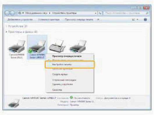 Щелкните правой кнопкой мыши значок принтера, настройки которого требуется задать -> щелкните пункт [Настройки печати].