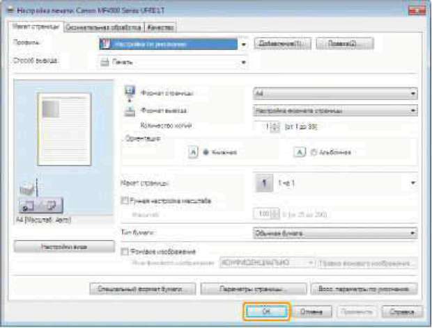 Задайте необходимые настройки на экране драйвера принтера -> щелкните [ОК].