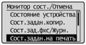С помощью клавиш выберите пункт <Состояние заданий на печать>, затем нажмите [OK].