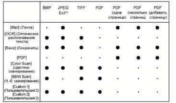 [Color Scan] (Цветное сканирование) [B&W Scan] (Ч.-б. сканирование) [Custom 1] (Пользовательский 2) [Custom 2] (Пользовательский 2)