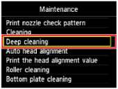 Если качество печати не улучшилось после стандартной очистки печатающей головки, выполните глубокую очистку печатающей головки. Во время глубокой очистки печатающей головки потребляется больше чернил, чем при стандартной очистке печатающей головки, поэтому выполняйте глубокую очистку печатающей головки только при необходимости.