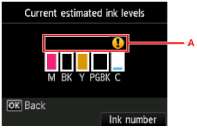 Приведенный выше экран показывает приблизительный уровень чернил.