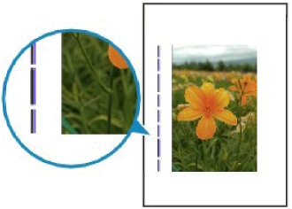На полях могут быть напечатаны вертикальные линии, если размер загруженной бумаги больше указанного размера.