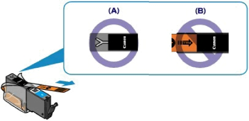 Если оранжевая лента не удалена, как на иллюстрации (B), потяните за ленту и удалите ее.