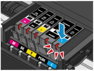 Оба типа чернил также расходуются при стандартной и глубокой очистке печатающей головки, выполнение которой может быть необходимо для обеспечения работы устройства. Если в нем закончились чернила, его требуется немедленно заменить.