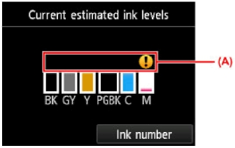 В области (A) появляется символ, если есть какие-либо данные об уровне оставшихся чернил.