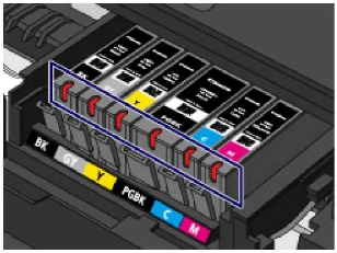 Установлен неправильно или отключена функция определения оставшегося запаса чернил. Если ненадежно зафиксирован, проверьте, удален ли оранжевый защитный колпачок с нижней части, а затем нажмите на верхнюю часть так, чтобы он зафиксировался на месте.