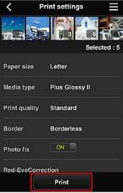 Чтобы завершить печать, выберите Приложения (Apps). Снова отобразится экран списка приложений.