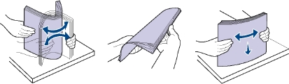 2. Подготовьте пачку бумаги к загрузке, согнув ее в разные стороны и расправив веером. Выровняйте края бумаги на ровной поверхности.
