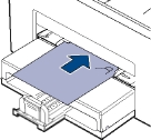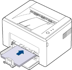 Материалы печати необходимо загружать стороной для печати вверх, верхним краем вперед. Размещайте материалы для печати по центру лотка.