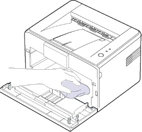 5. Мягкой тканью без ворса протрите место установки, чтобы удалить частицы пыли и тонера.