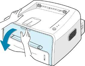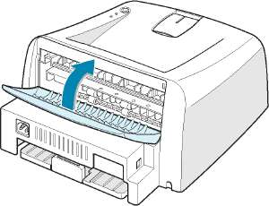 Соблюдайте осторожность при открытии задней крышки. Внутри принтер все еще горячий.