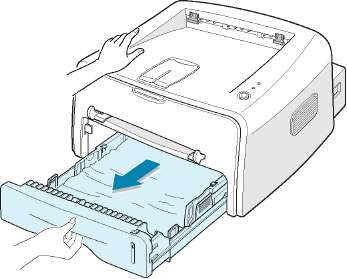 1 Выдвиньте лоток и найдите замятую бумагу.