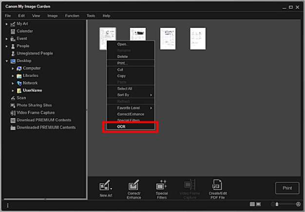 2. Щелкните правой кнопкой мыши изображение, которое нужно преобразовать в текст, затем щелкните OCR в появившемся меню.