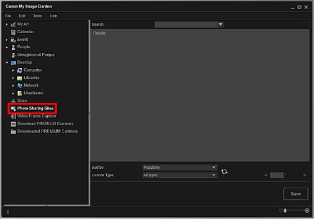 2. Щелкните Сайты для обмена фотографиями (Photo Sharing Sites).