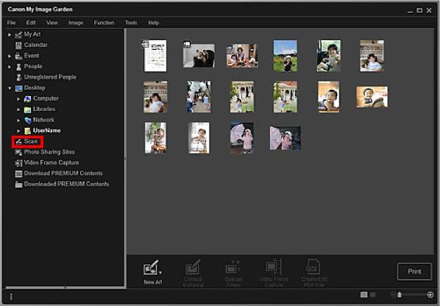 Щелкнув ScanGear в окне Сканировать (Scan), можно запустить ScanGear (драйвер сканера) и выполнить сканирование с указанием выходного формата, коррекции изображения и других параметров.
