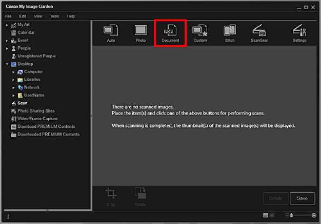Осуществляется переход к окну Сканировать (Scan). 4. Щелкните Документ (Document).