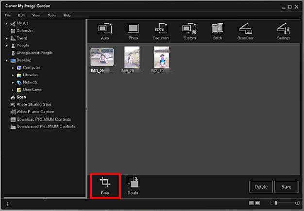 Щелкните Сохранить (Save), чтобы сохранить повернутые или обрезанные отсканированные изображения.