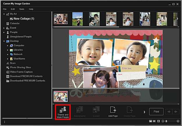 1. Щелкните Тема и основные люди (Theme and Main People) в окне Мои работы (My Art).