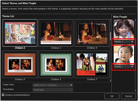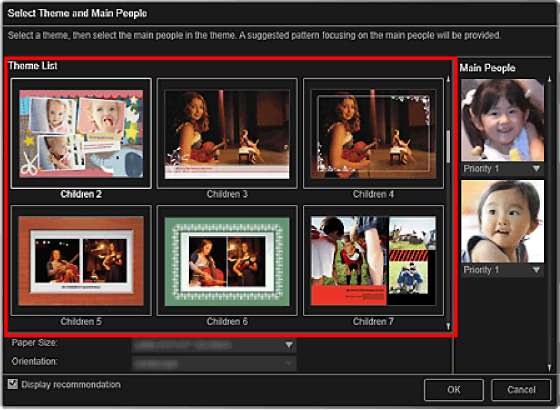 Открывается диалоговое окно Выберите тему и основных людей (Select Theme and Main People).