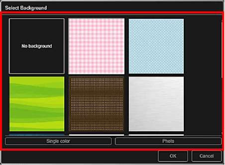 Если выбрано Фото (Photo), можно вставить фоновое изображение, перетащив его из области материалов. Можно также выполнить сканирование объекта, например фотографии, и вставить его в фон. Щелкните правой кнопкой мыши фон страницы в области редактирования, а затем выберите Использовать отсканированное изображение (Use Scanned Image) в отображаемом меню.