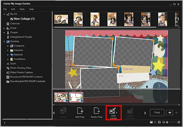 Выбор подходящих изображений и их размещение в рамках на макете осуществляется на основании рейтинга и сведений о людях, зарегистрированных для изображений. Шаблоны изображений в объекте сменяются при каждом щелчке данного параметра.