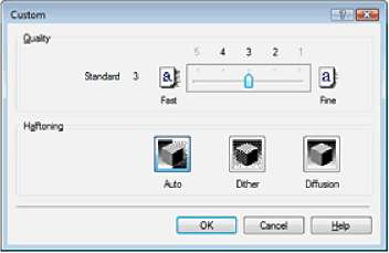 Выберите уровень качества, перемещая регулятор Качество (Quality). Выберите метод представления Полутона (Halftoning) и нажмите кнопку ОК.