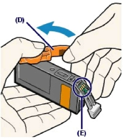 Не прикасайтесь с электрическим контактам (E). Это может привести к сбоям в работе устройства или к прекращению печати.