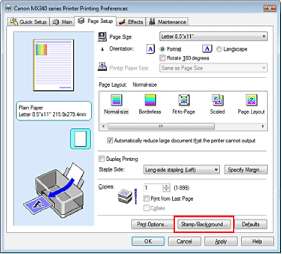 2. Нажмите кнопку Штамп/Фон... (Stamp/Background...) на вкладке Страница (Page Setup).