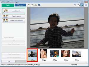 Окно Исправить/улучшить изображения (Correct/Enhance Images) можно также открыть, нажав кнопку (Исправление/улучшение изображений) на панели инструментов или в диалоговом окне Крупнее (Zoom in). В этом случае исправить или улучшить можно только целевое изображение (заключенное в оранжевую рамку).