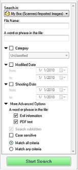 Нажмите кнопку Поиск (Search) в окне слева, чтобы открыть параметры поиска. Введите информацию об изображении, которое вы хотите найти, затем нажмите кнопку Начать поиск (Start Search).