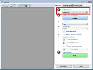Функция Предварительный просмотр (Preview) не отображается, если для параметра Выбор источника (Select Source) выбран вариант с использованием УАП.