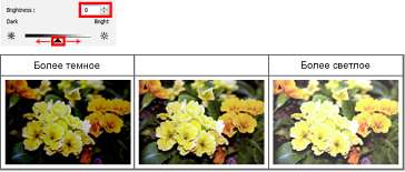 Настройте яркость изображения. Переместите (регулятор) параметра Яркость (Brightness) влево, чтобы сделать изображение темнее, или вправо, чтобы изображение стало светлее. Можно также ввести числовое значение (от -127 до 127).