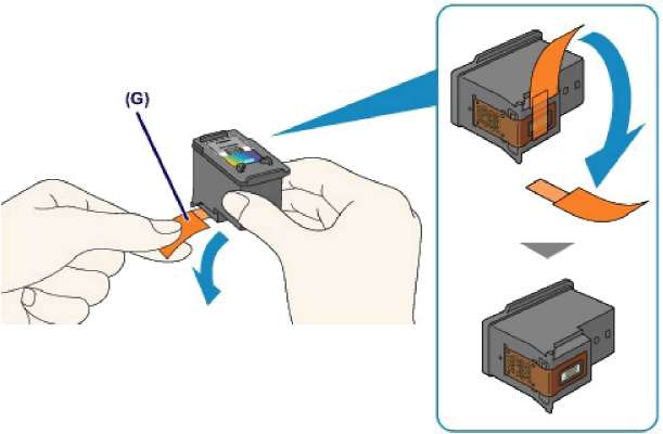 (1) Извлеките его из упаковки и осторожно удалите защитную ленту (G).