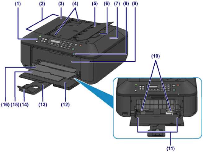 Откройте, чтобы заменить картридж или удалить застрявшую бумагу из устройства.