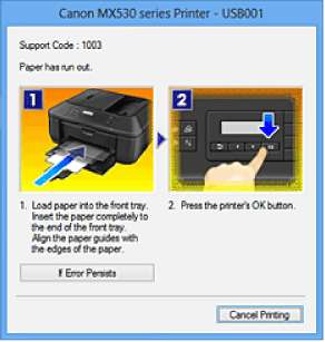 Монитор состояния Canon IJ автоматически выводится на экран, если происходят ошибки (например, если в принтере закончилась бумага или осталось мало чернил).