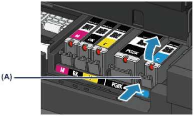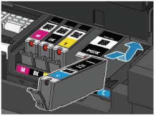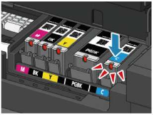 Картридж с черными пигментными чернилами (PGBK) необходимо вставить ровно посредине, чтобы расстояние справа и слева было одинаковым.