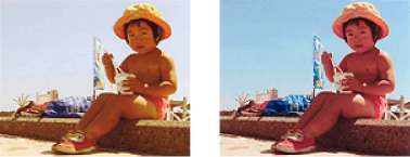 Следующий пример показывает ситуацию, когда цветовой баланс используется для усиления голубого и ослабления желтого, то есть в целом цвета становятся более однотипными.