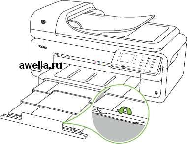 Если печатаются документы, размер которых превышает формат A3 (11 x 17 дюймов), полностью выдвиньте удлинитель выходного лотка и установите ограничитель бумаги.