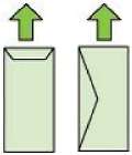 3. Загружайте конверты в соответствии с рисунком. Убедитесь, что стопка конвертов выровнена по заднему краю лотка и не превышает линии на лотке.