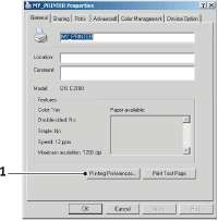 3. Щелкните по кнопке Printing Preferences (Предпочтения печати) (1).