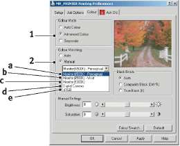 1. Во вкладке Colour (Цвет) выберите Advanced Colour (Расширенное управление цветом) ((1) ниже) для подбора цветов.
