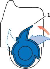 Потяните цветной рычаг освобождения (1) от себя для фиксации в новом печатном барабане и освобождения тонера внутри него.